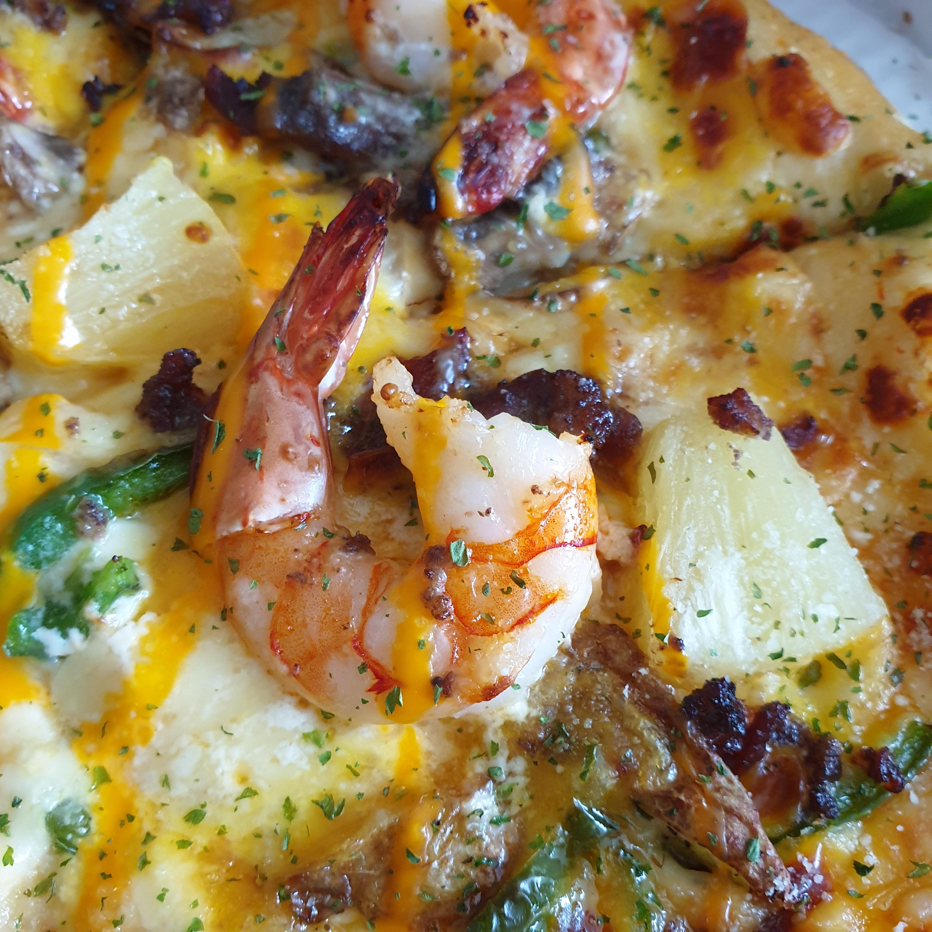 쫄깃하고 살이 꽉차 탱탱하게 씹히는 블랙타이거 슈림프, 바다의 맛과 조화를 이룰 리얼불고기, 풍미가 느껴지는 치즈 4종의 조합, 느끼할 새 없이 만들어주는 망고 하바네로 소스 등 토핑이 아주 화려하고 다양합니다.